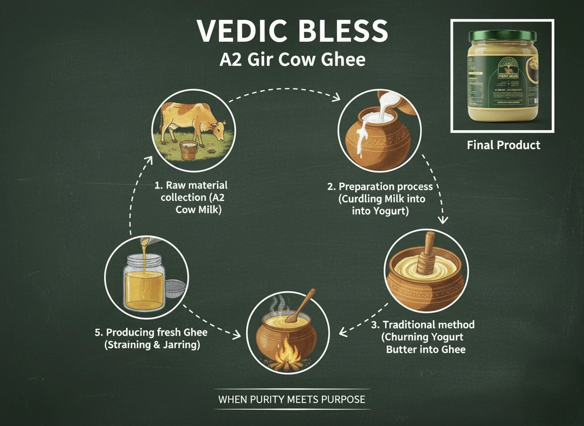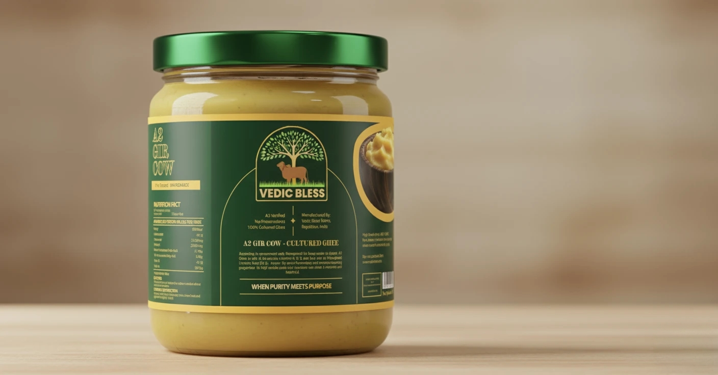 Crafted from A2 Gir Cow Milk using the traditional Vedic Bilona method, our A2 Gir Cow Ghee is 100% pure, nutrient-rich, and free from preservatives.